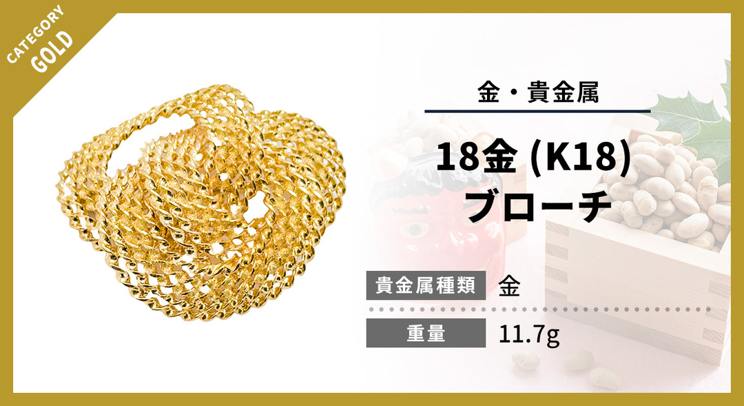 当店では18金 (K18) ブローチの価値を細かく見極め、現在の金相場を反映した査定を行っています。